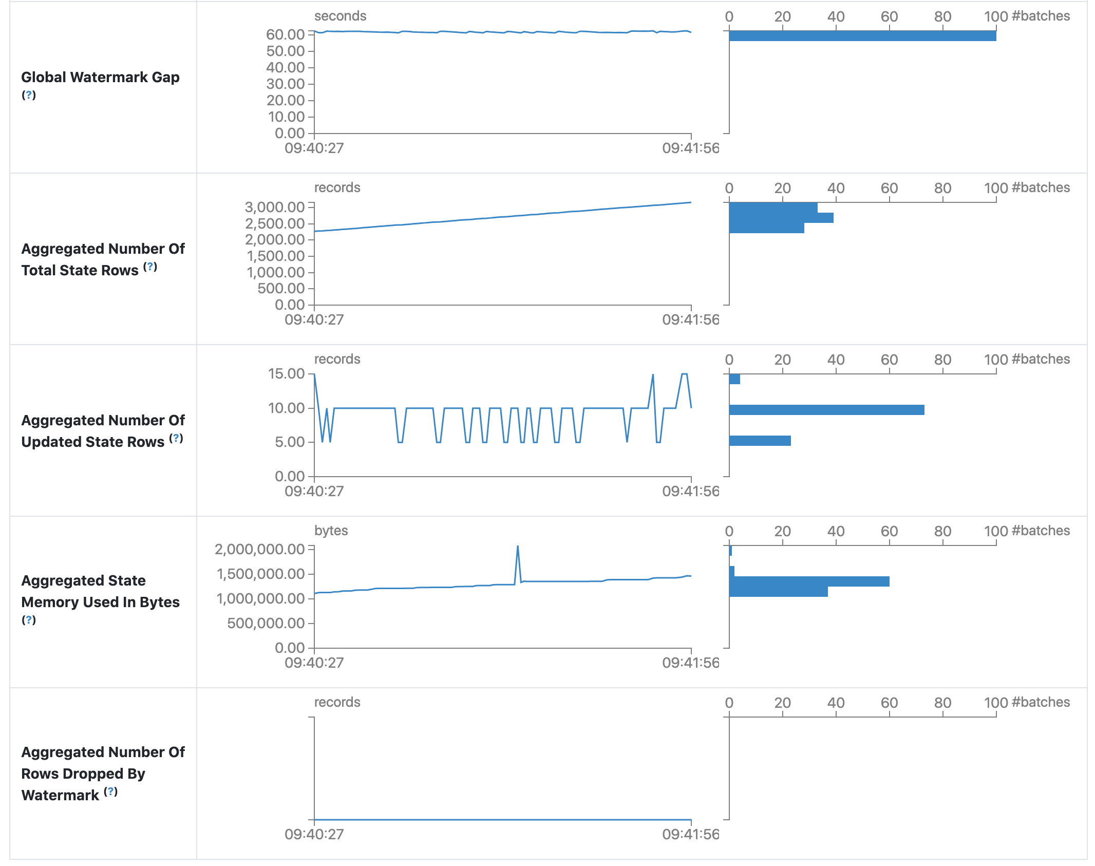 - Global Watermark Gap. The gap between batch timestamp and global watermark for the batch.